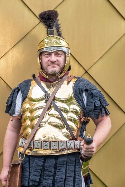 Schlüpft in die Rolle eines Römers/Germanen, versucht Euch als Legionär, Schildkrötenformation, Katapult- und Bogenschütze, malt Korn und backt Brot!