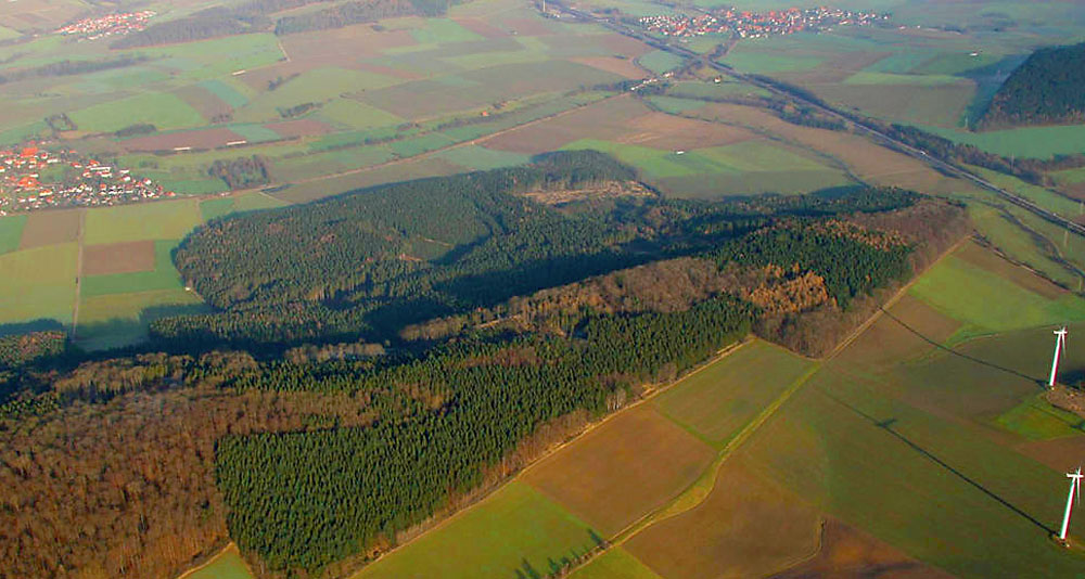 Während das Gelände am Harzhorn nach Süden flach abfällt, bildet der Höhenzug Richtung Norden eine steile Flanke als natürliche Barriere – ähnlich einer Mauer. Die Topographie hatte vermutlich maßgeblichen Einfluss auf das Kampfgeschehen vor Ort um 235 nach Christus.