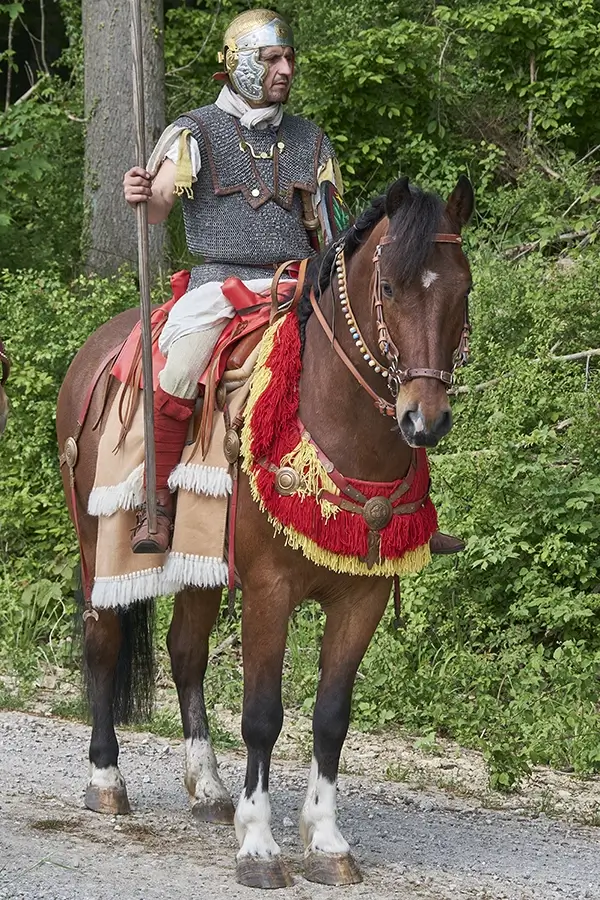 In einem engbegrenzten Fundareal direkt oberhalb des Steilhanges lag ein kleiner zusammengehöriger Fundkomplex, der von besonderer Bedeutung für die Untersuchungen des Schlachtfeldes ist. Es gelang eine persönliche Ausstattung eines Beteiligten, wohl römischen Reiters oder eines germanischen Auxiliars in römischen Diensten zu fassen.